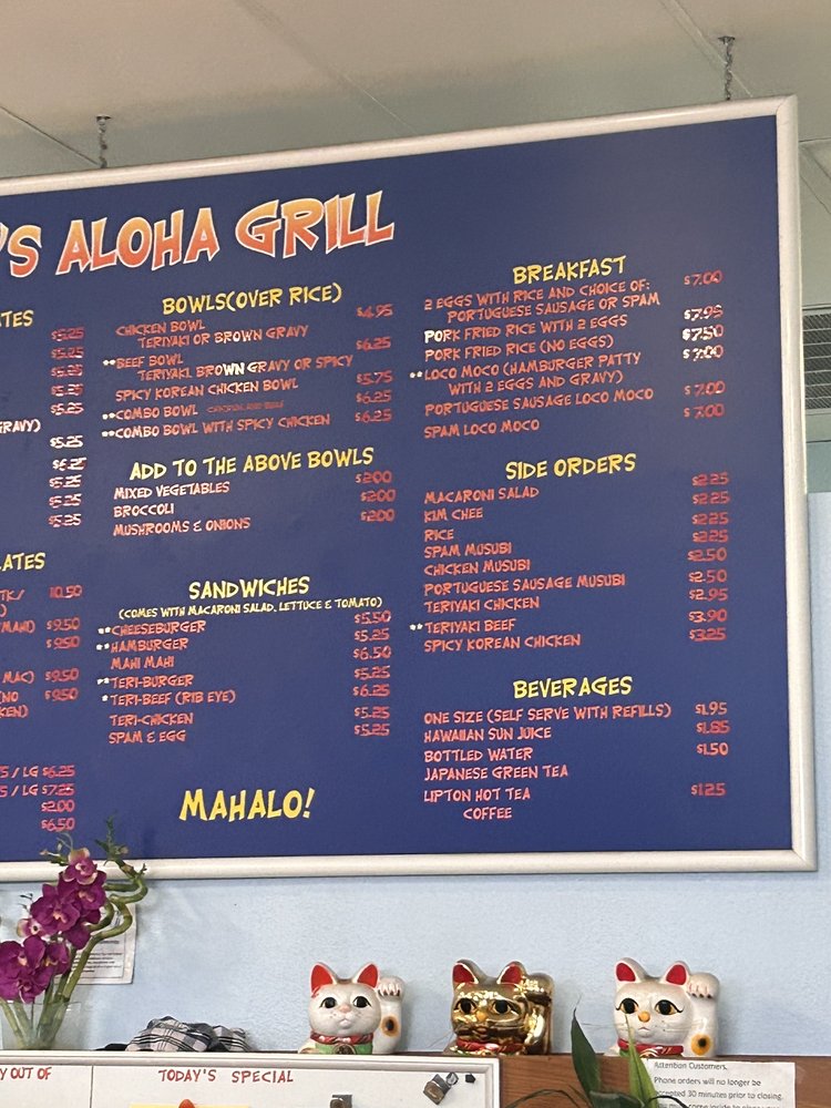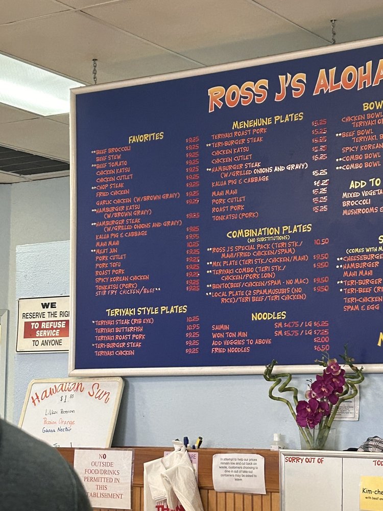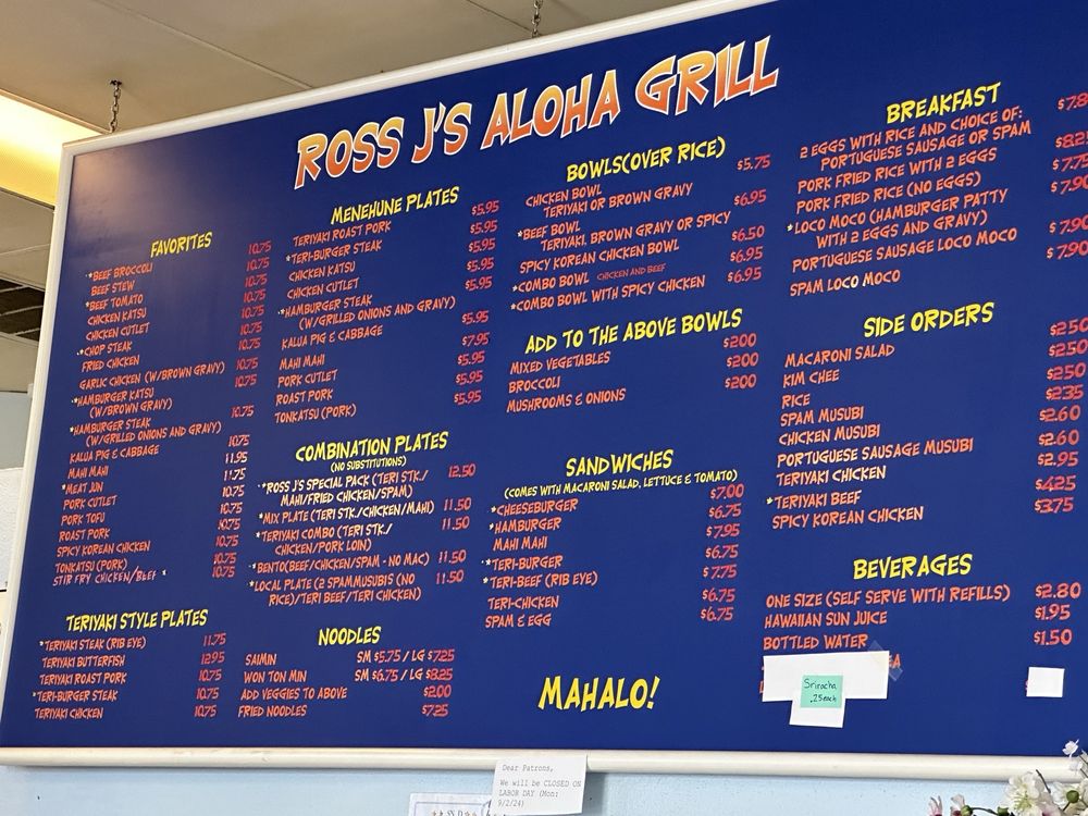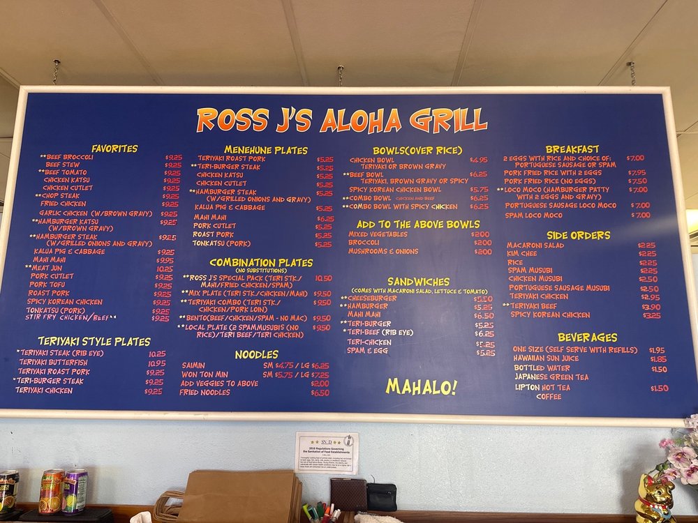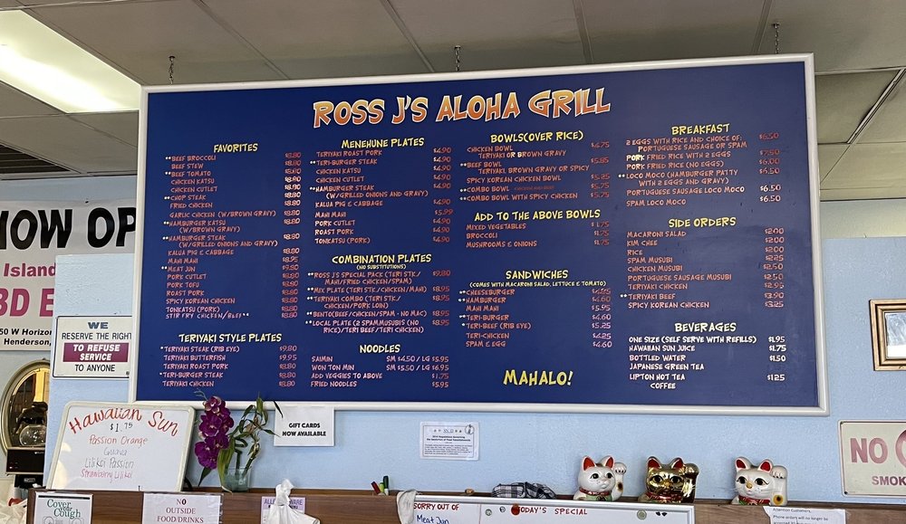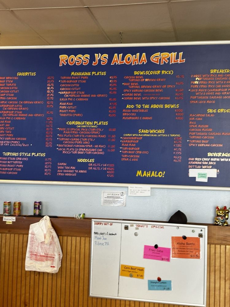 Ross J's Aloha Grill is a Hawaiian gem located in Henderson, NV, offering a variety of dishes with island flavors. The menu features options such as beef, chicken, and fish prepared in unique ways. Customer reviews praise the generous portions, welcoming service, and affordable prices. The restaurant's cozy atmosphere and efficient staff create a pleasant dining experience. Standout dishes include the combo bowl with chicken and beef over rice, chicken katsu, and the flavorful lumpia. The teriyaki bowl is a favorite, with tender beef and well-seasoned chicken. The cheeseburger and sweet chili sauce-infused lumpia are also recommended. Despite being busy, the restaurant maintains a calm ambiance, making it ideal for a casual, delicious meal. Don't miss out on this hidden Hawaiian treasure for a taste of Aloha spirit!